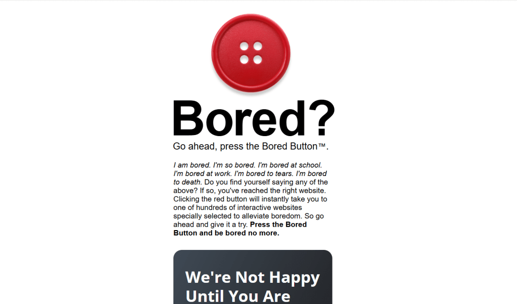 In the event you’re feeling bored and need to cross a while, go to this web site and click on on the purple button to shock your self with humorous, interactive, and inventive web sites and video games.