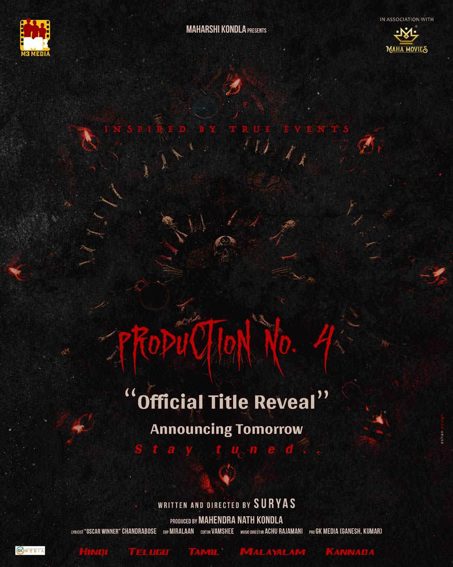 One other intriguing movie full of horror and thriller parts is about to thrill audiences quickly. Main manufacturing homes M3 Media and Maha Motion pictures are collectively producing this challenge. Offered by Maharshi Kondla, the movie is presently being made below the working title “Manufacturing No. 4.” With the tagline “Impressed by True Occasions,” the film is already producing curiosity by hinting that it’s based mostly on real-life incidents.