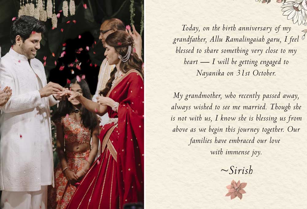 Allu Sirish expressed his gratitude to Nayanika’s associates for welcoming him into their circle and making him really feel cherished. He additionally wished Varun Tej and Lavanya Tripathi a cheerful second anniversary, sharing a heartfelt submit about how he met Nayanika at their marriage ceremony celebration.