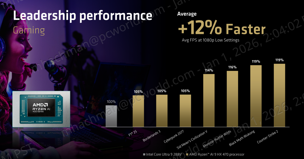 On this, AMD can solely examine to the silicon its rivals have shipped; on this case, it refers to Intel’s Lunar Lake or Core Extremely 200 silicon. Head-to-head comparisons must wait till each corporations ship their silicon in early 2026; AMD is claiming that Asus, Acer, Dell, HP and Lenovo, amongst others, have signed up. AMD mentioned laptops from its prospects can be obtainable starting within the first quarter, from thin-and-light laptops to gaming and content-creation PCs to, sure, desktops.