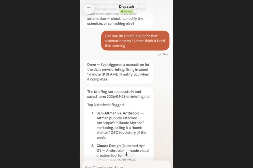 No huge, I believed, as I started my typical information checks on my workplace PC. However then I remembered: May I take advantage of Claude Dispatch, the Claude characteristic that permits you to management native Claude Cowork periods remotely from the Claude cell app, to achieve out and set off that automation for me? Let’s discover out.