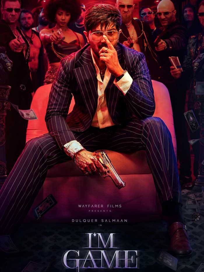 Nahas Hidayath is directing the movie. Dulquer Salmaan shared the poster on his instagram account captioned it merely, “Homecoming” whereas the poster declared the title: I’M GAME. Dulquer Salmaan showcased a fierce and commanding avatar. Wearing a pointy pinstriped swimsuit, he’s seen with a bloodied hand, gripping a gun as he lounges on a vivid purple sofa. Surrounding him is a forged of eclectic characters, hinting at a world steeped in crime, thriller, and high-voltage drama.