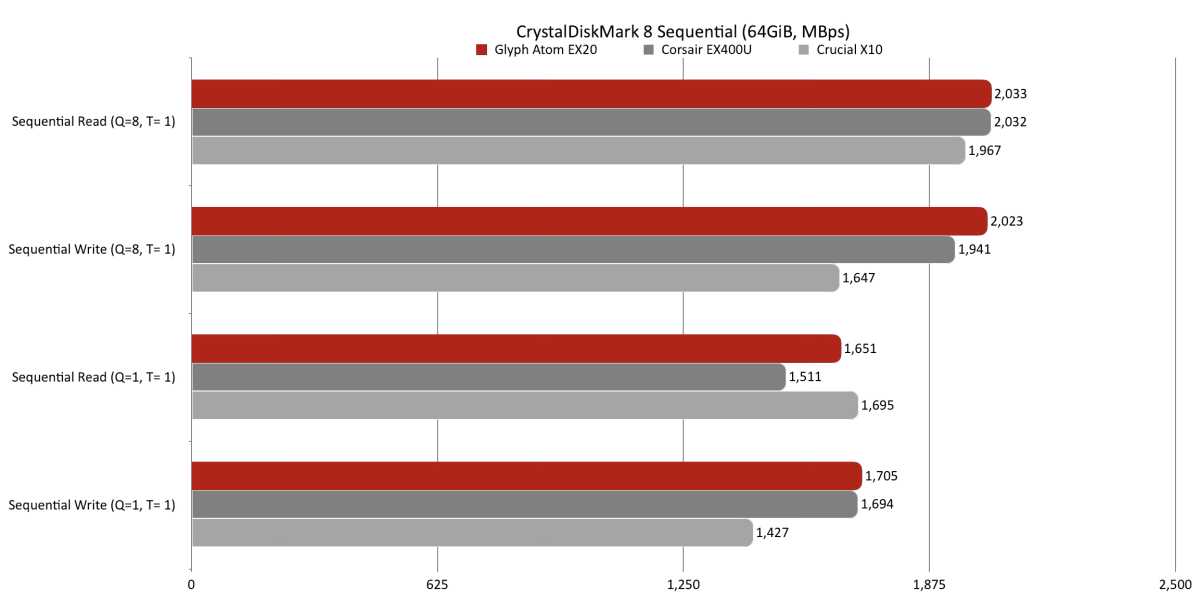 That was not significantly honest of us. So due to that, think about the EX20 the highest canine in pre-populated 20Gbps USB. That’s borne out by the drive’s CrystalDiskMark 8 numbers proven beneath.
