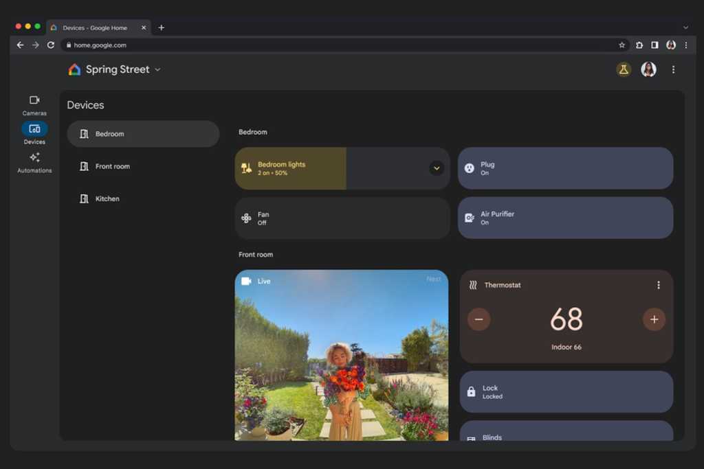 A brand new Gadgets tab now sits within the left-hand column of the Google Residence internet interface, snuggled in-between the prevailing Cameras and Automations tab. Click on the tab, and also you’ll get a room-by-room rundown of your Google Residence-connected good gadgets, together with clickable controls.