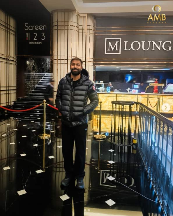 Hardik Pandya snaps at AMB Mall goes viral on social media. AMB Cinemas sharing the image, posted “From hitting the ball out of the park to hitting the proper spot for leisure, @hardikpandya7 exhibits precisely what it means to be an all-rounder “