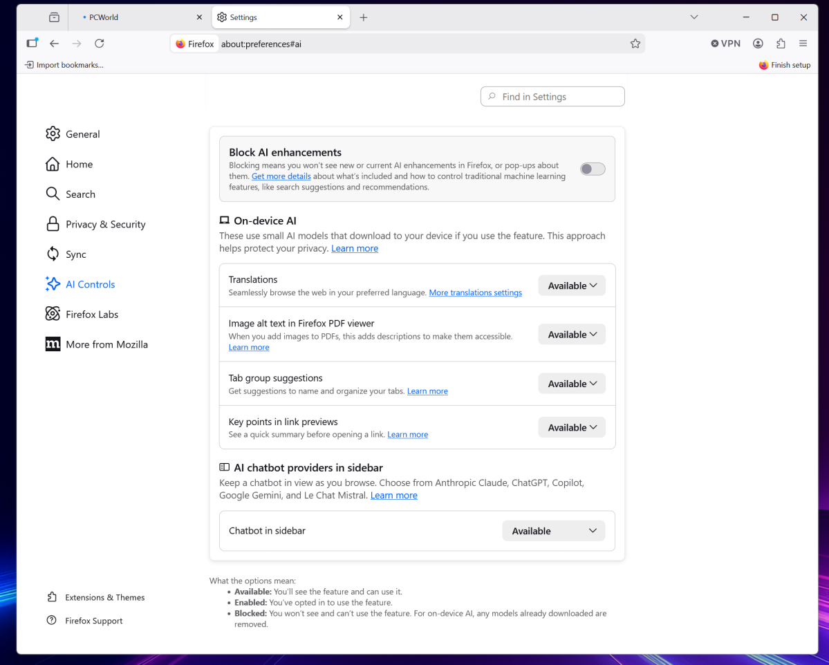 The distinction between Firefox and different apps is that Mozilla has no incentive to prioritize a selected app or service. A selection display may ship quite a lot of fashions — most likely curated by Mozilla, Varma mentioned — or nothing in any respect. (Perplexity AI simply appeared.) Varma dismissed Edge as “a Copilot app,” and Chrome as “a Gemini app.”