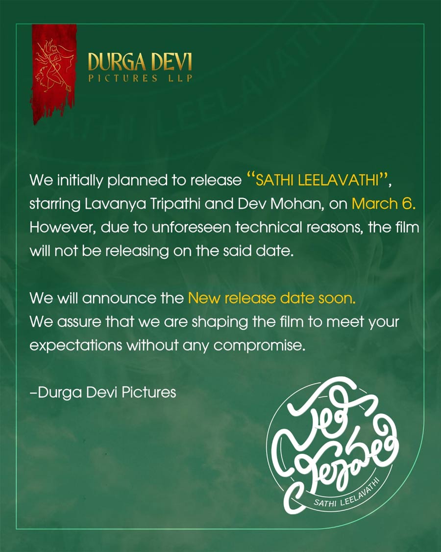 Mega Prince Varun Tej’s spouse Lavanya Tripathi is coming to entertain film lovers along with her upcoming movie ttiled Sathi Leelavathi. The movie stars Dev Mohan within the lead function underneath the route of Tatineni Satya. The movie was imagined to launch on 6 March 2026.