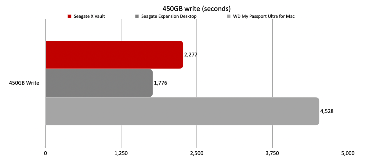 Identical story with the 450GB write, the X Vault loses to the Enlargement Desktop however mops the ground with the WD My Passport Extremely for Mac.