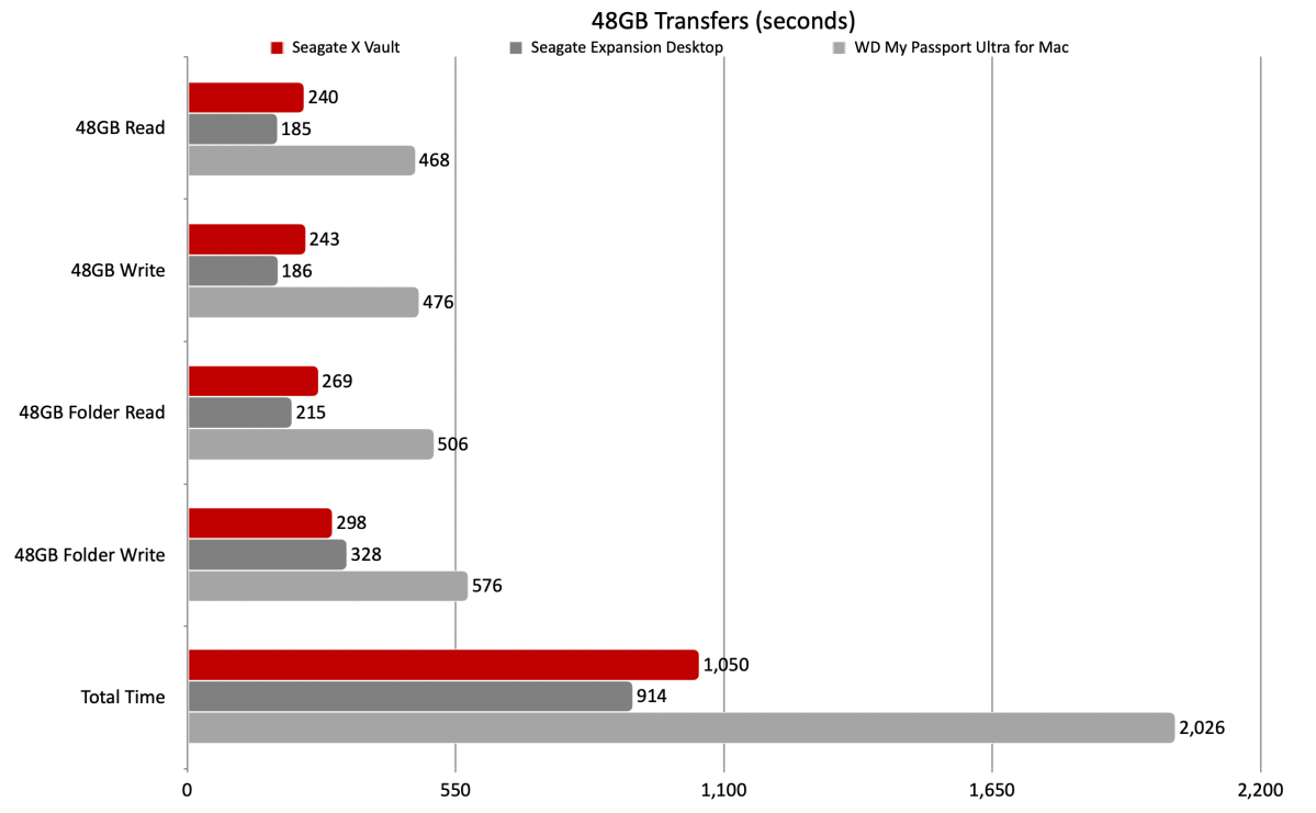 Beneath you may see that whereas slower than Seagate’s personal 3.5-inch Enlargement Desktop, the X Vault is way quicker than a typical 2.5-inch HDD, represented within the charts under by the WD My Passport Extremely for Mac.