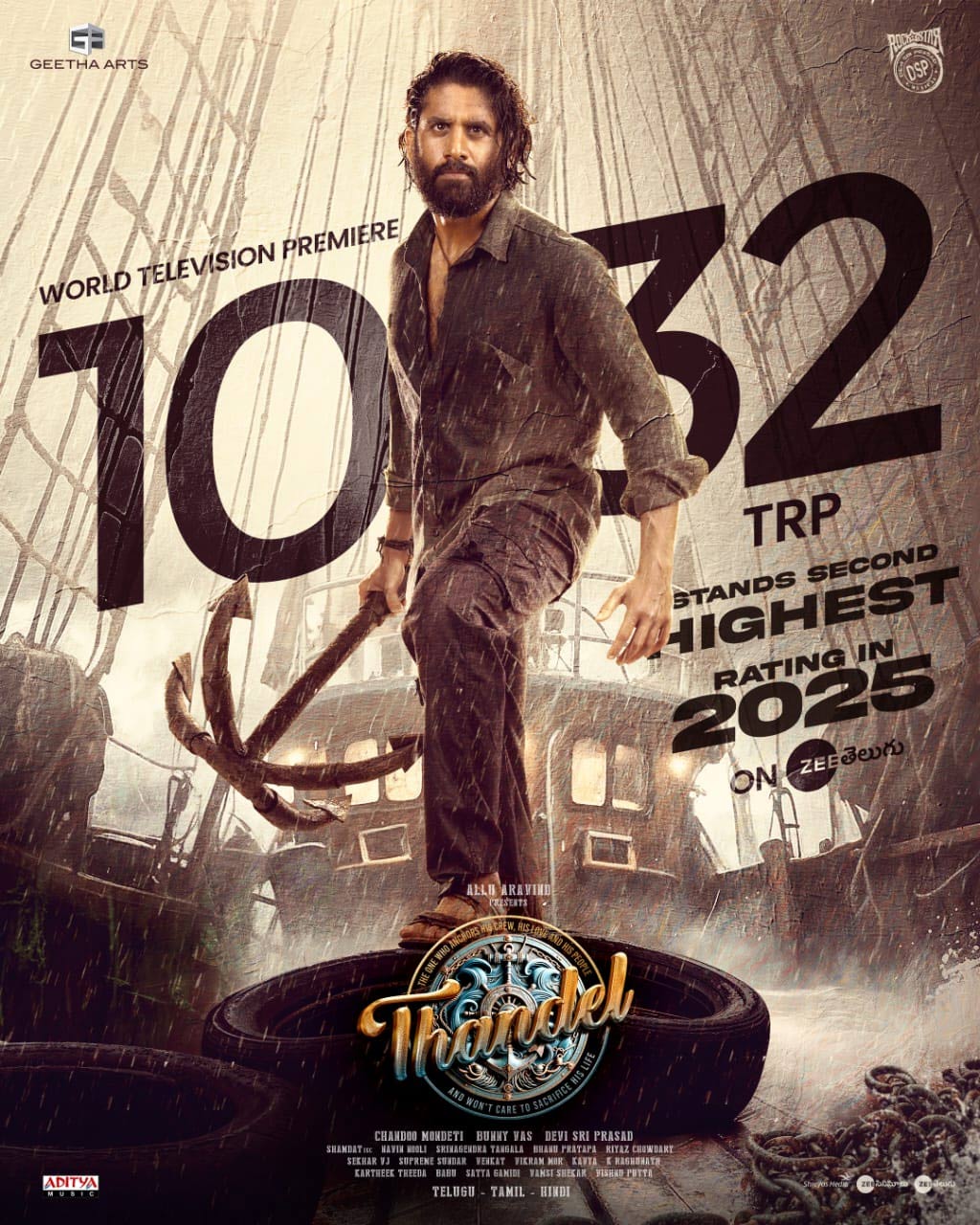 Now, the movie had its premier on Zee Telugu and the world extensive premier obtained super response. The TRP rankings set a brand new file. Thandel on its first world extensive premier screening obtained 10.32 TRP rankings.